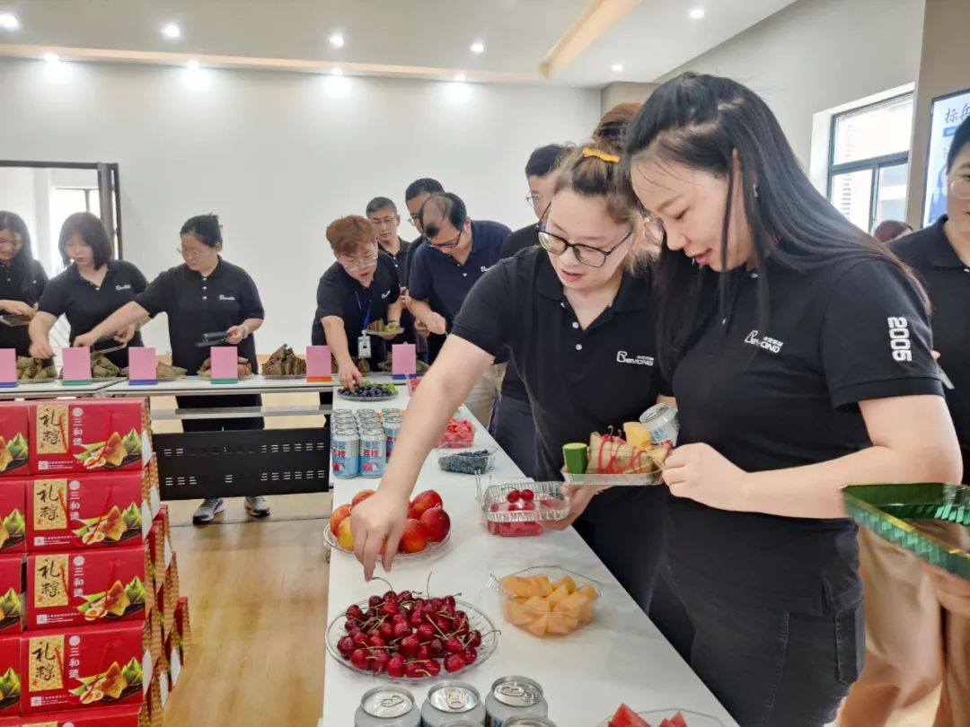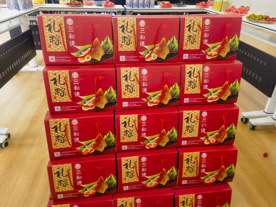 隨后,公司給所有員工發(fā)放了節(jié)日福利——粽子禮盒,一粒粒粽子經過大家的手有了溫度,給他們帶去節(jié)日的溫暖和問候。